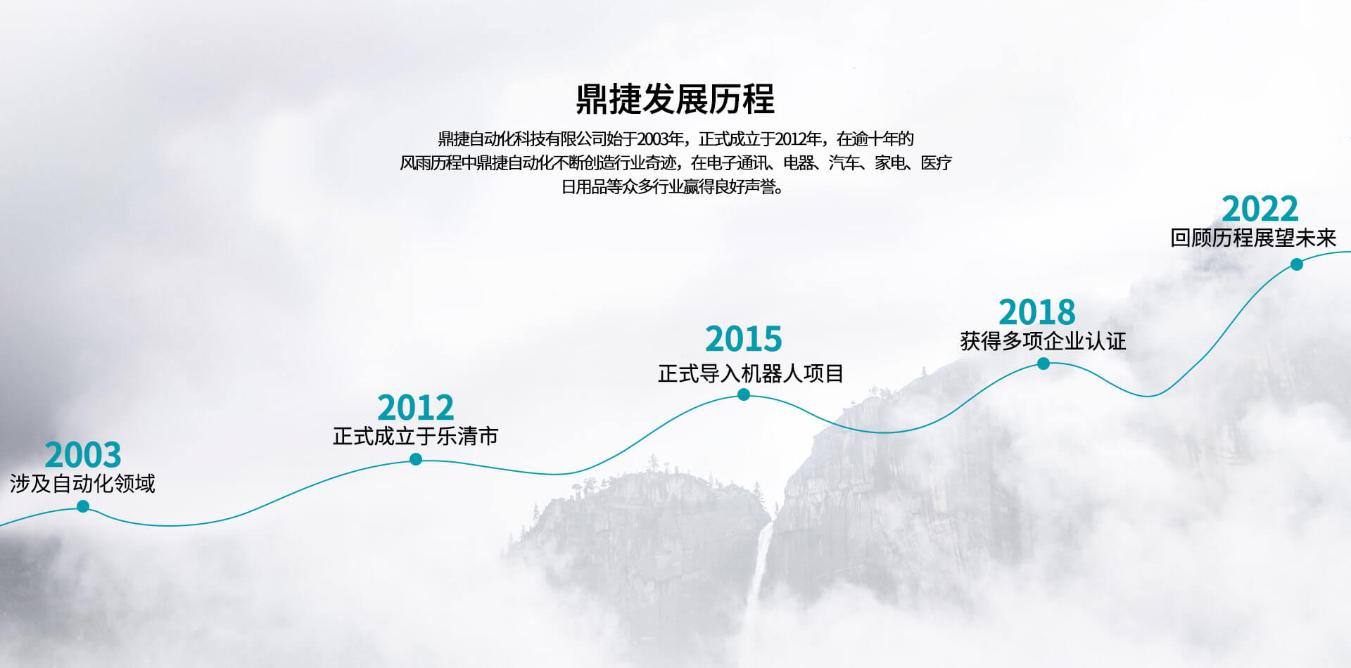 公司始于2012年,在逾十年的風(fēng)雨歷程中,不斷創(chuàng)造行業(yè)奇跡,在電子通訊、電器、汽車、家電、醫(yī)療、日用品等眾多行業(yè)贏得良好聲譽。公司坐落于浙江省樂清經(jīng)濟開發(fā)區(qū),現(xiàn)有人員63人,擁有經(jīng)驗豐富的工程技術(shù)研發(fā)團隊11人,其中高級工程6人,具備本科以上學(xué)歷高級工程人員比例78%;同時鼎捷自動化在蘇州,東莞等地設(shè)立分公司以服務(wù)目標(biāo)市場客戶,目前鼎捷自動化已經(jīng)為下客戶提供配套自動化解決方案:泰科、安費諾、莫士、華為、中興、普聯(lián)、智英、意華、德豐、公牛、萬事達、華豐、飛雕、普思、冠聯(lián)、俊朗松田、進聯(lián)、高正、盛凌等。鼎捷自動化專業(yè)從事連接器、開關(guān)及相關(guān)電子、電器、五金、塑膠產(chǎn)品組裝自動化定制、設(shè)計、制造、銷售。2012年,鼎捷自動化正式導(dǎo)入機器人應(yīng)用項目,可為各類客戶提供電子、電器、汽車、五金、塑膠等集成自動化智能組裝系統(tǒng)。